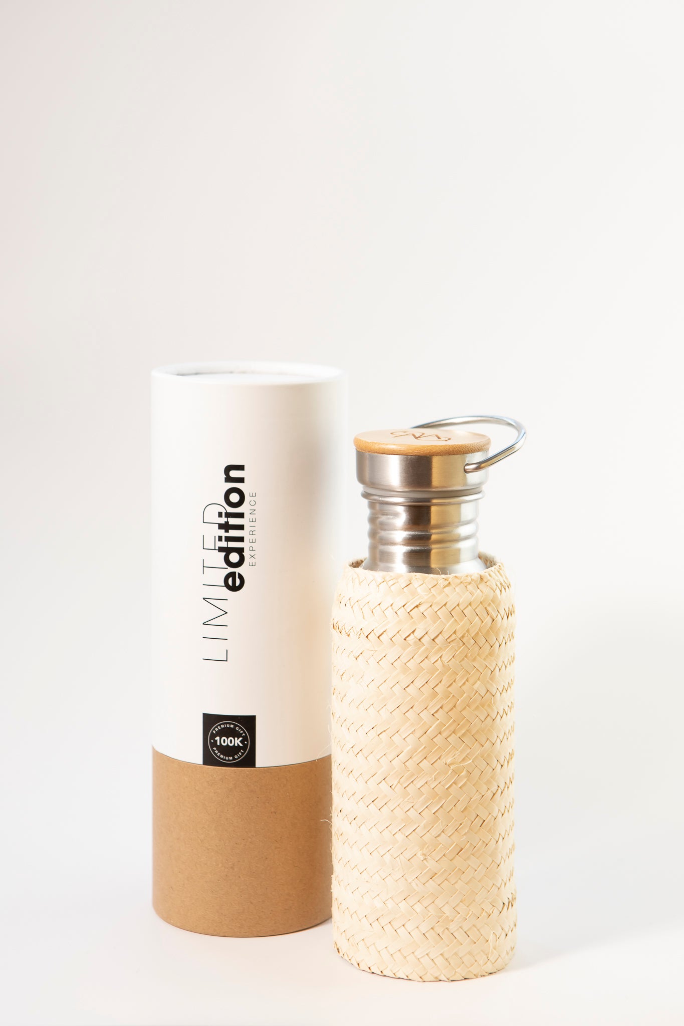 Con un diseño elegante y natural, esta botella térmica combina acero inoxidable de alta calidad, base de bambú y funda tejida con asa, para acompañarte en tu día a día con estilo, conciencia y funcionalidad.